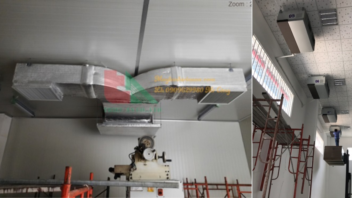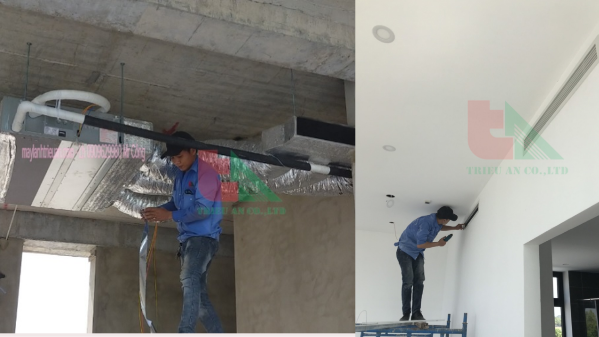 Việc lắp đặt máy và chạy ống sẽ thực hiện khi xong phần thô, lắp miệng gió khi hoàn thiện phần trần và sơn nước ( giai đoạn bàn giao nhà )