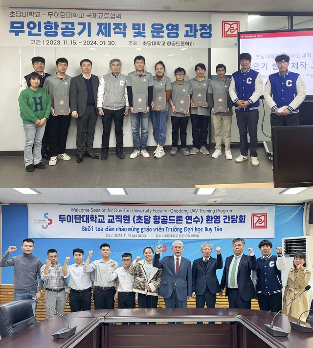 6 cán bộ nghiên cứu của Trung tâm Điện-Điện tử (CEE) thuộc Đại học (ĐH) Duy Tân đã tham gia vào đợt tập huấn tại Trung tâm Đào tạo UAV (Máy bay không người lái) của ĐH Chodang, Hàn Quốc diễn ra từ ngày 13.11.2023 đến 6.2.2024.