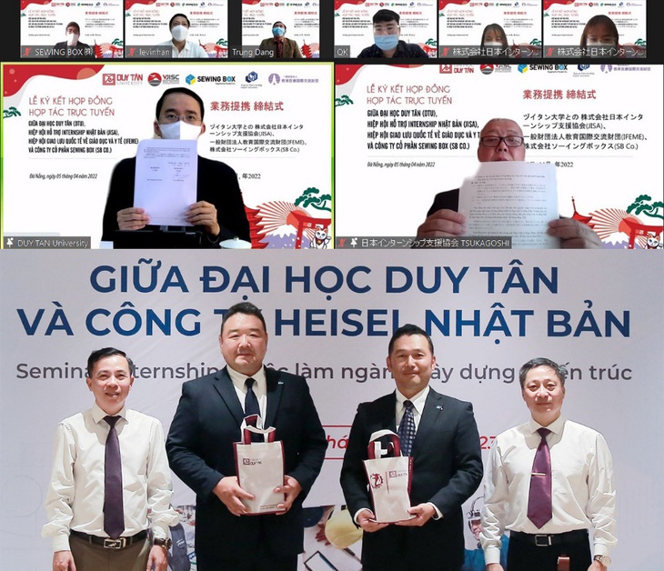 Trường ĐH Duy Tân ký kết online với Hiệp hội Hỗ trợ Internship Nhật Bản (JISA) (ảnh trên) và ký kết với Công ty Cổ phần Xây dựng Tổng hợp Heisei, Nhật Bản