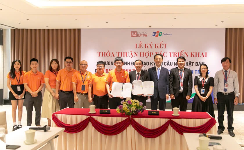 FPT Software Đà Nẵng (FSOFT Miền Trung) và Đại học Duy Tân chính thức ký kết triển khai chương trình đào tạo Kỹ sư Cầu nối Nhật Bản (Japanese BrSE) cho các khóa sinh viên từ năm 2 của Đại học Duy Tân vào ngày 23/8/2024. Đây là chương trình đã được FPT Software Đà Nẵng triển khai đào tạo rất hiệu quả từ đơn vị và chính thức chuyển giao về các trường đại học để tiếp tục hành trình đào tạo cung cấp cho xã hội nguồn nhân lực chất lượng trong lĩnh vực Công nghệ Thông tin.