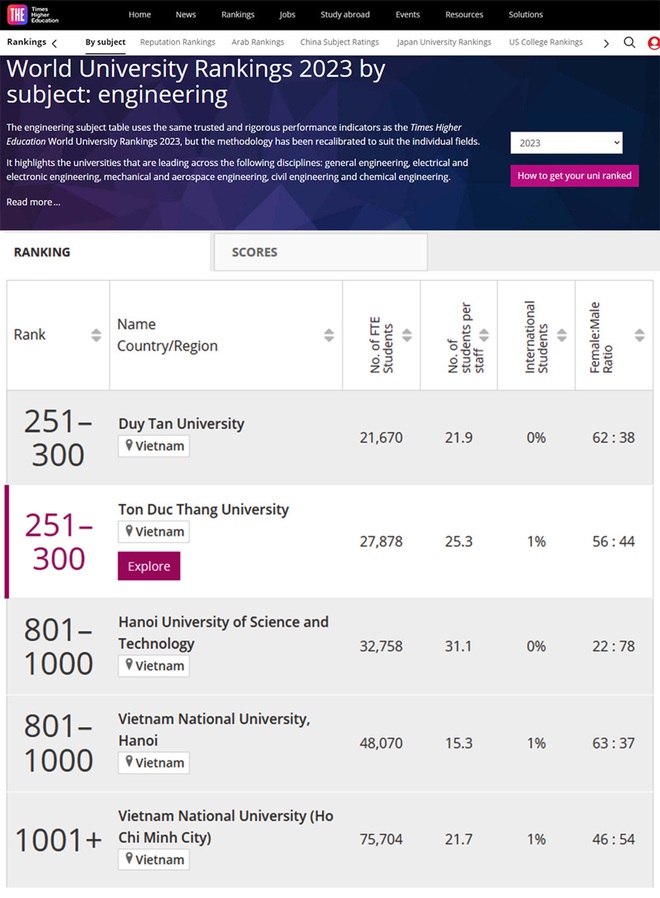 Những nỗ lực trong hợp tác quốc tế, quan hệ doanh nghiệp để nâng cao chất lượng đào tạo đã giúp các lĩnh vực Công nghệ - Kỹ thuật của ĐH Duy Tân định vị được vị thế trên các bảng xếp hạng uy tín nhất thế giới, cụ thể, lĩnh vực Kỹ thuật - Công nghệ của ĐH Duy Tân nằm trong Top 251-300 thế giới, theo Times Higher Education (THE).