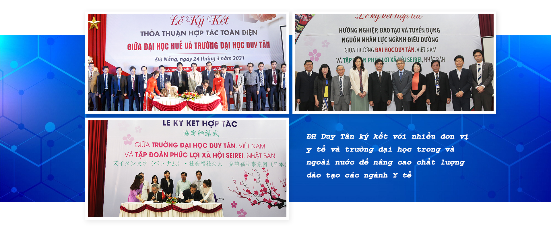 Để có nguồn nhân lực chất lượng, nhiều quốc gia phát triển đã đến Việt Nam và hợp tác với các trường đại học về chương trình/nội dung đào tạo hay cung cấp các thiết bị y tế phục vụ học tập và nghiên cứu. Tiêu biểu như ở ĐH Duy Tân, Tập đoàn Glome Management đã trao tặng 2 phòng Thực hành Kỹ năng Điều dưỡng theo chuẩn Nhật Bản với tổng giá trị hàng trăm triệu đồng với nhiều thiết bị chuyên dụng cho công tác Điều dưỡng như: giường tại nhà, giường phòng bệnh, đệm chống loét, xe đẩy điều dưỡng RKW-302, Cole mat C hyper (MSN1200) HCH-1, KT-95HD Natural, Cây truyền dịch đứng MY-22258,…