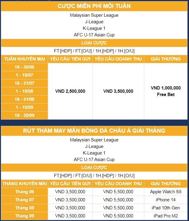 GOAL123 mang đến chương trình khuyến mãi "BÓNG ĐÁ CHÂU Á SÂN CHƠI TUYỆT ĐỈNH" để ủng hộ đam mê bóng đá châu lục và tạo thêm niềm vui cho các fan hâm mộ. Tham gia vào chương trình này, bạn sẽ có cơ hội nhận được giải thưởng đặc biệt và hấp dẫn. Chỉ cần tham gia cược trên các trận đấu bóng đá châu Á (danh sách các giải đấu bên dưới), bạn có thể giành chiến thắng và nhận thêm phần thưởng hậu hĩnh.