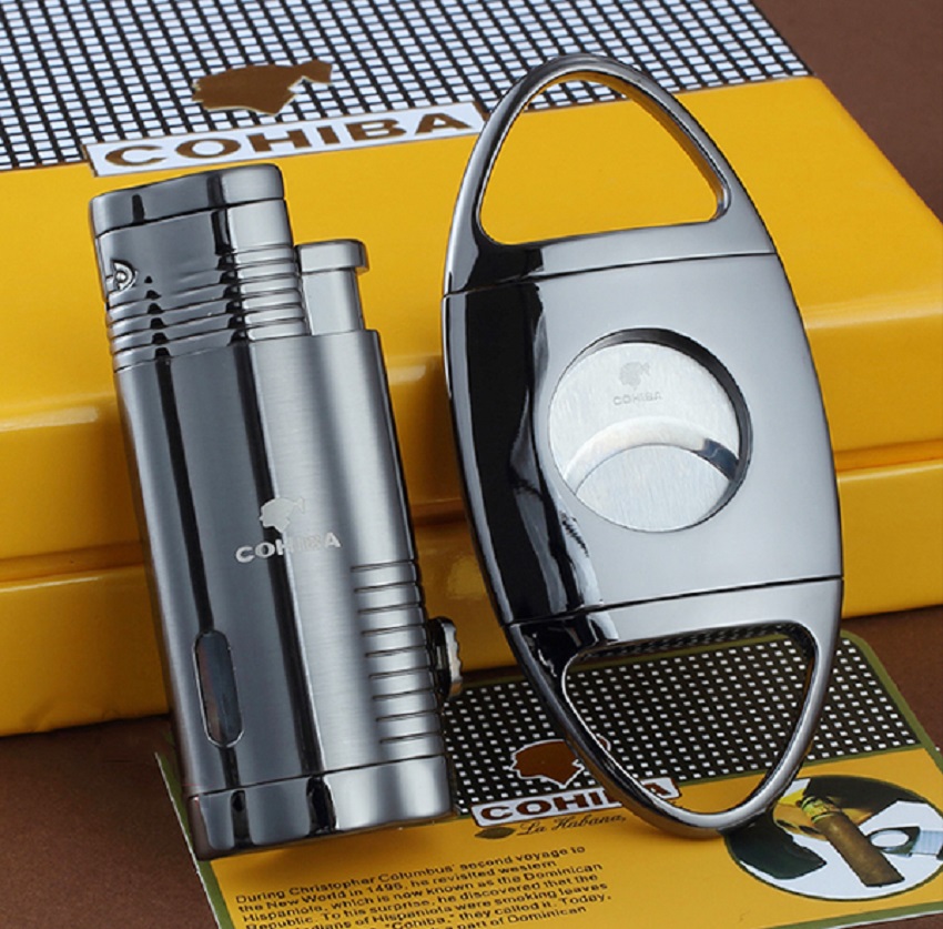 Set phụ kiện xì gà Cohiba T14 gồm dao cắt xì gà và bật lửa khò 4 tia cực mạnh