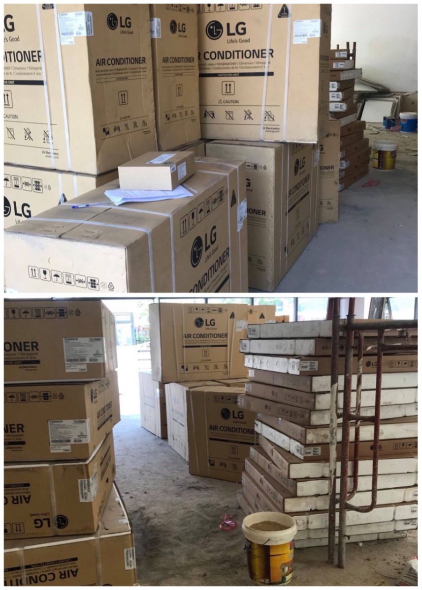 Hình ảnh ngoài bao bì máy lạnh âm trần LG được chụp thực tế