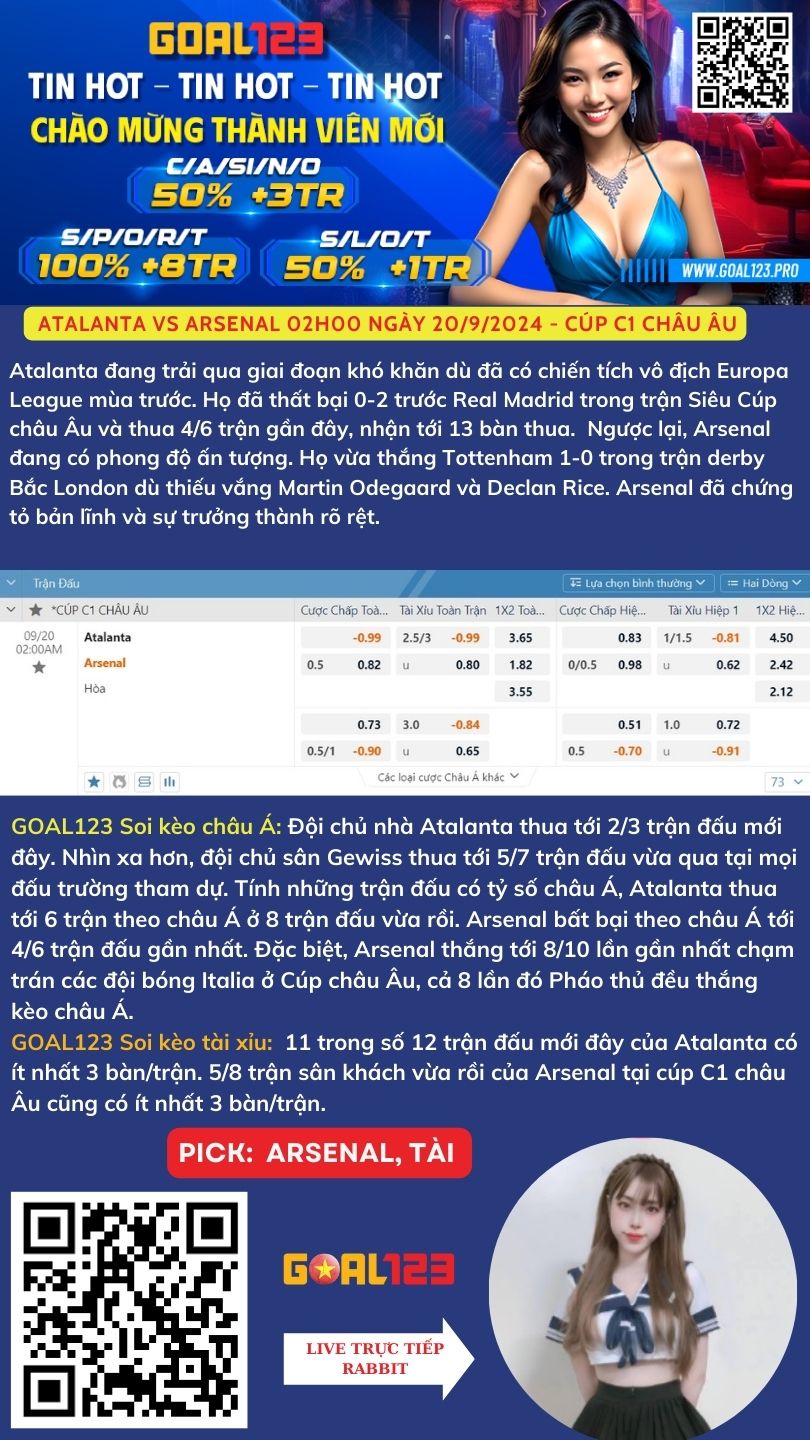 SOI KÈO NHẬN ĐỊNH BÓNG ĐÁ: Atalanta vs Arsenal 02h00 ngày 20/9/2024 - Cúp C1 châu Âu
