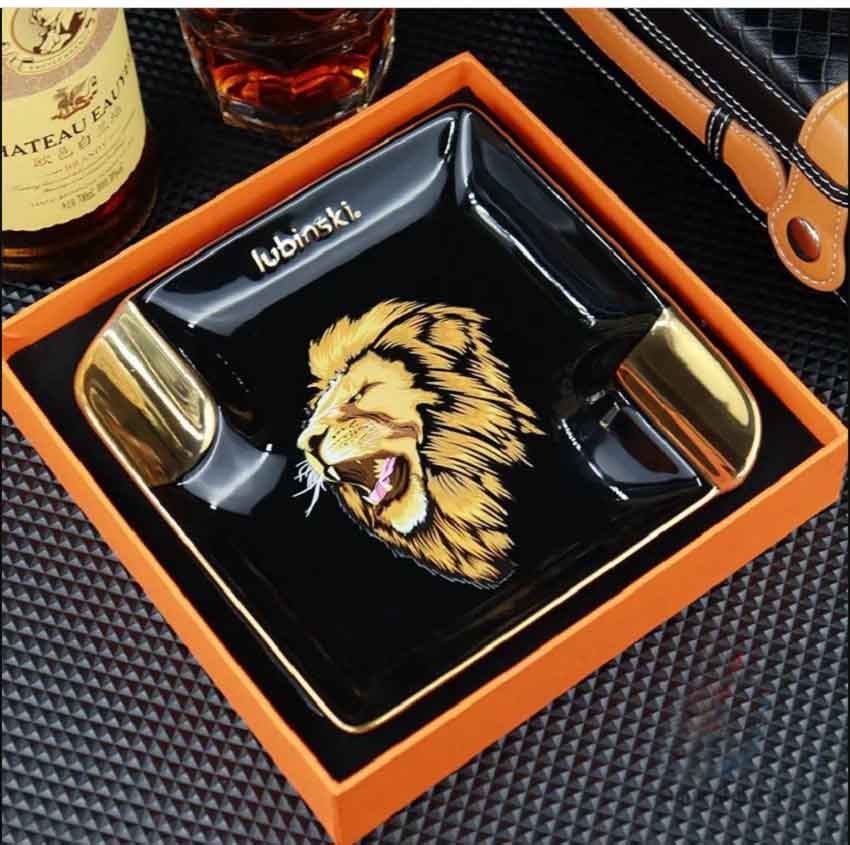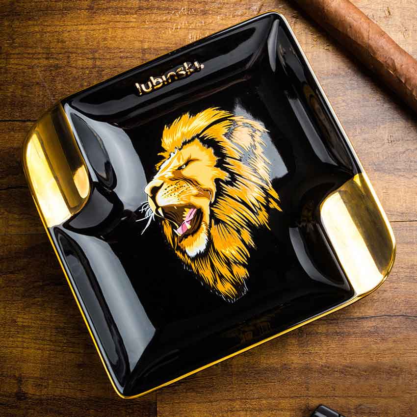 Lubinski YJA-20018 thiết kế độc đáo với sự kết hợp của 2 màu vàng đen hiện đại nổi bật giữa lòng gạt tàn là hoa văn trang trí đầu sư tử cá tính mạnh mẽ.