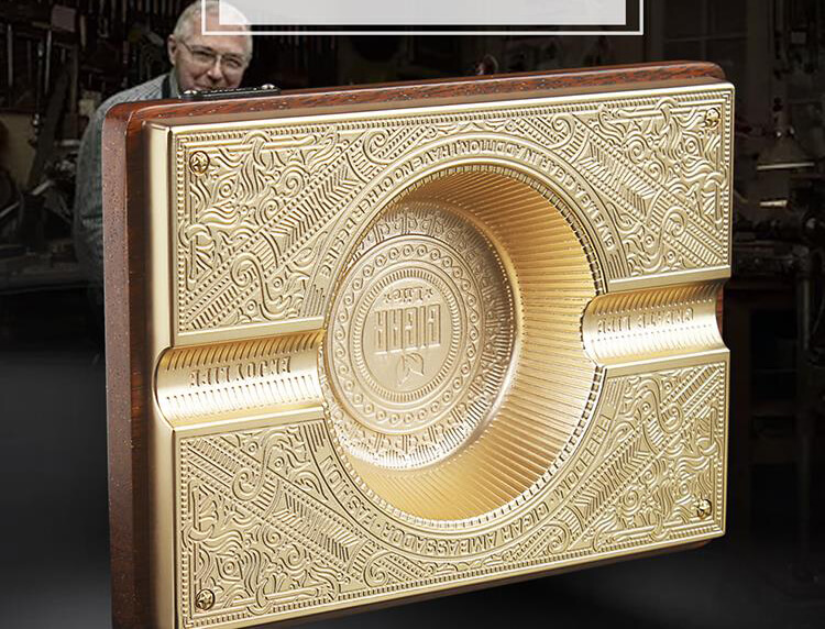 Gạt tàn xì gà Lubinski 20005 có phần đế làm từ gỗ màu nâu, phần thân gạt tàn làm từ đồng màu vàng gold sang trọng. Họa tiết trang trí là những hoa văn tân cổ điển đem đến cho sản phẩm sự cuốn hút lạ kỳ.