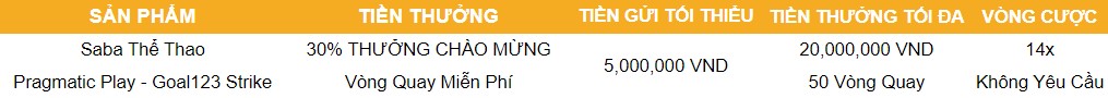 Chúng tôi hi vọng rằng chương trình khuyến mãi này sẽ giúp bạn tận hưởng trọn vẹn niềm vui và thăng hoa trong trải nghiệm cá cược của mình tại GOAL123 Thể thao. Hãy tận dụng cơ hội này và khám phá những trận đấu hấp dẫn, đồng thời tăng cường nguồn vốn của bạn với mức thưởng đáng kể.20M THƯỞNG CHÀO MỪNG SABA SPORTS - CHỈ DÀNH CHO THÀNH VIÊN MỚI ĐĂNG KÝ[/URL]