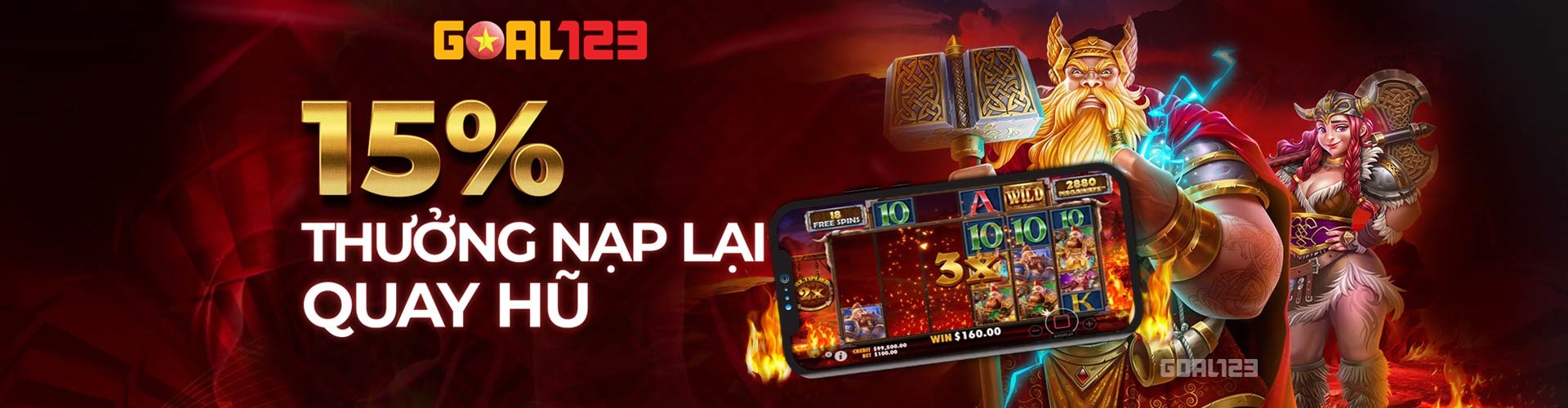 Nhà cái GOAL123 luôn biết cách chiều lòng khách hàng với những chương trình khuyến mãi độc đáo và hấp dẫn. Và lần này, chúng tôi hân hạnh giới thiệu chương trình siêu hot: "15% THƯỞNG NẠP LẠI QUAY HŨ"