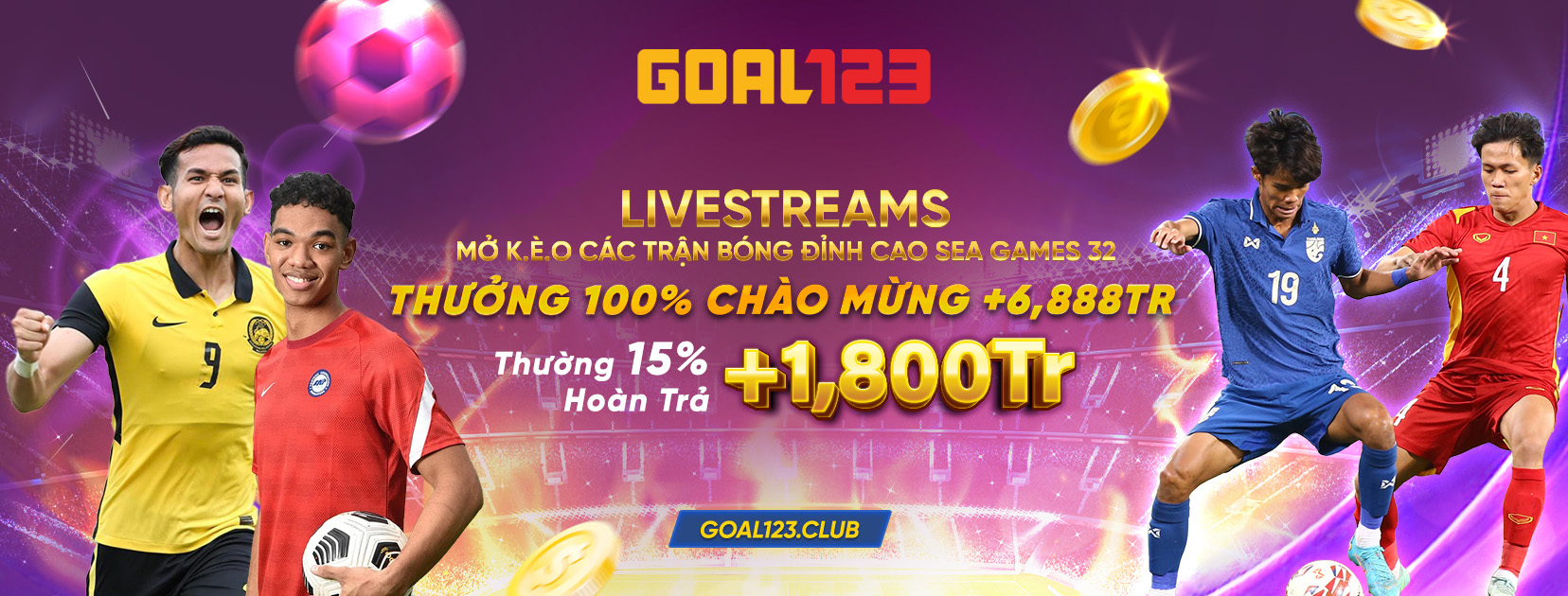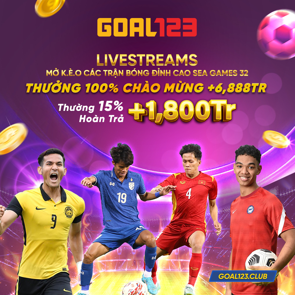LIVESTREAMS SEA GAMES cùng GOAL123 MỞ KÈO CÁC TRẬN BÓNG ĐỈNH CAO mang lại bầu không khí sôi động nhất của SEA GAME 32, hòa mình vào sự háo hức đáng mong đợi và nhận lấy tiền thưởng CHÀO MỪNG lên đến 6,888TrGOAL123 dành tặng bạn. Lưu ý , GOAL123 ưu đãi thêm tiền thưởng 15% Hoàn trả +1,800Tr