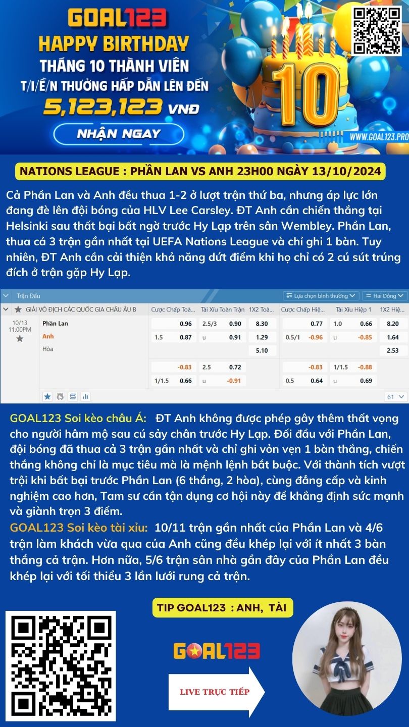 DỰ ĐOÁN KẾT QUẢ NATIONS LEAGUE : Phần Lan vs Anh 23h00 ngày 13/10/2024