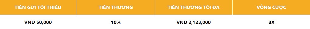 a. Sau khi hoàn tất yêu cầu nạp lại tối thiểu, thành viên sẽ được nhận Khuyến Mãi hợp lệ mỗi ngày.