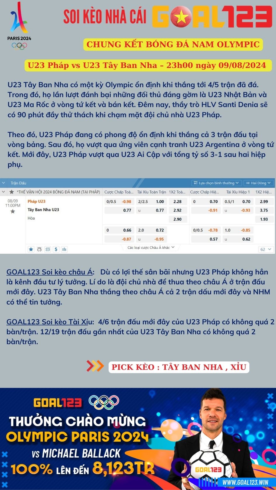 SOI KÈO NHÀ CÁI GOAL123 Pháp vs Tây Ban Nha – 23h00 ngày 09/08/2024 – Olympic 2024