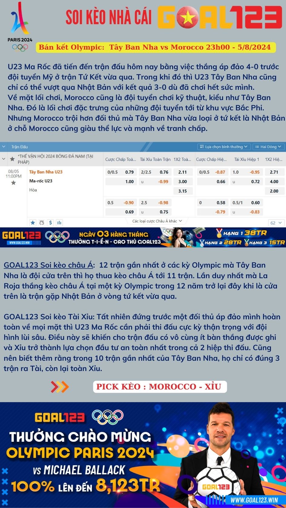 SOI KÈO NHÀ CÁI GOAL123 : U23 Tây Ban Nha vs U23 Morocco 23h00 ngày 5/8/2024 - Olympic 2024