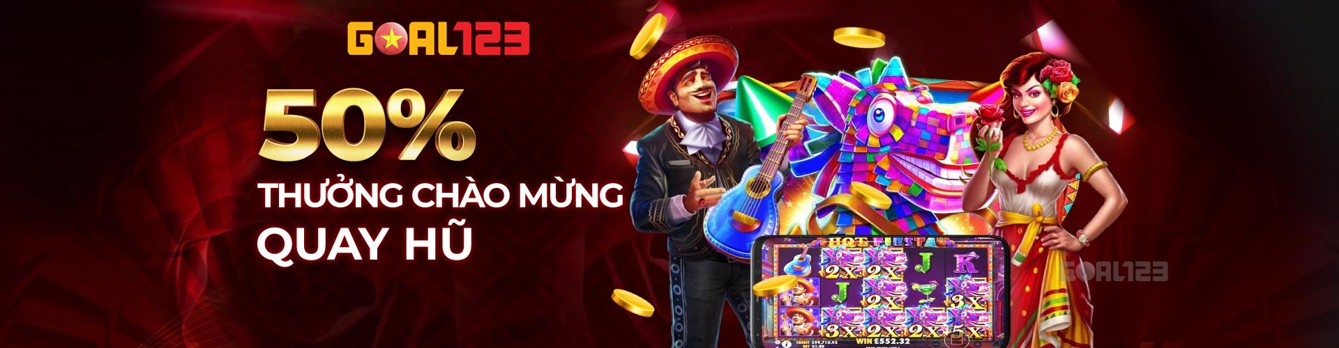 Slot game là một trong những sản phẩm được thành viên Goal123 lựa chọn trong thời gian qua còn nhờ vào chính sách ưu đãi hấp dẫn của Goal123 - cụ thể là chương trình 38% THƯỞNG CHÀO MỪNG QUAY HŨ