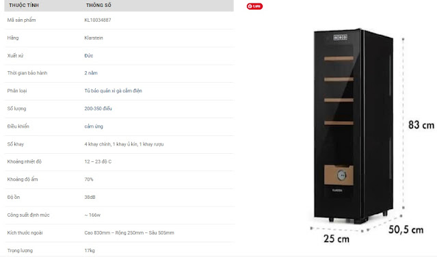 - Ngăn để cigar: 100 - 200 điếu tùy size