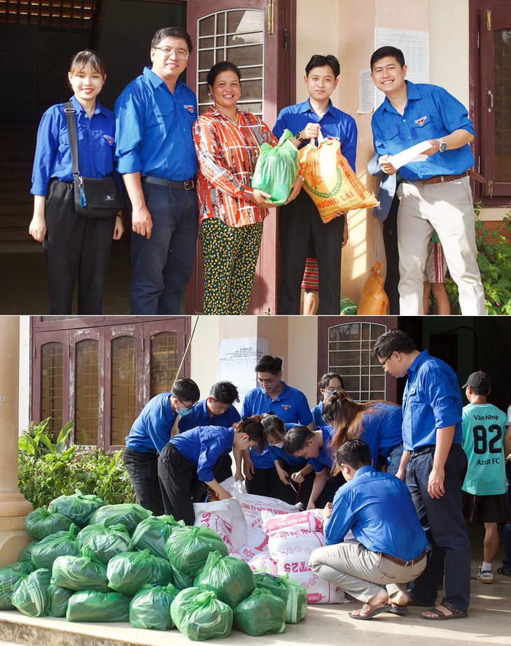 Cán bộ, giảng viên và sinh viên trao quà cho người dân