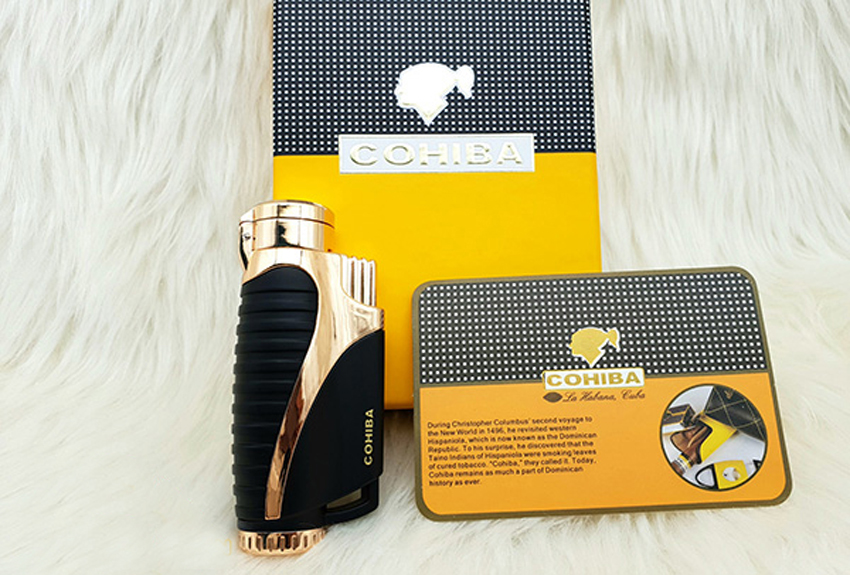 Bật lửa hộp quẹt cohiba COB399 chính hãng 3 tia lửa khò cực bền đốt cháy xì gà các size một cách dễ dàng và nhanh chóng.