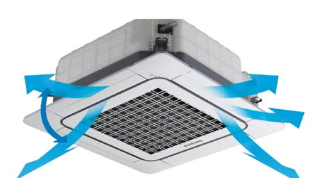 Cassette 4 hướng gió với hàng chục ngàn lỗ nhỏ giúp phân tán luồng gió lạnh nhẹ nhàng, không thổi trực tiếp vào người – mang lại cảm giác mát dịu, dễ chịu suốt cả ngày.