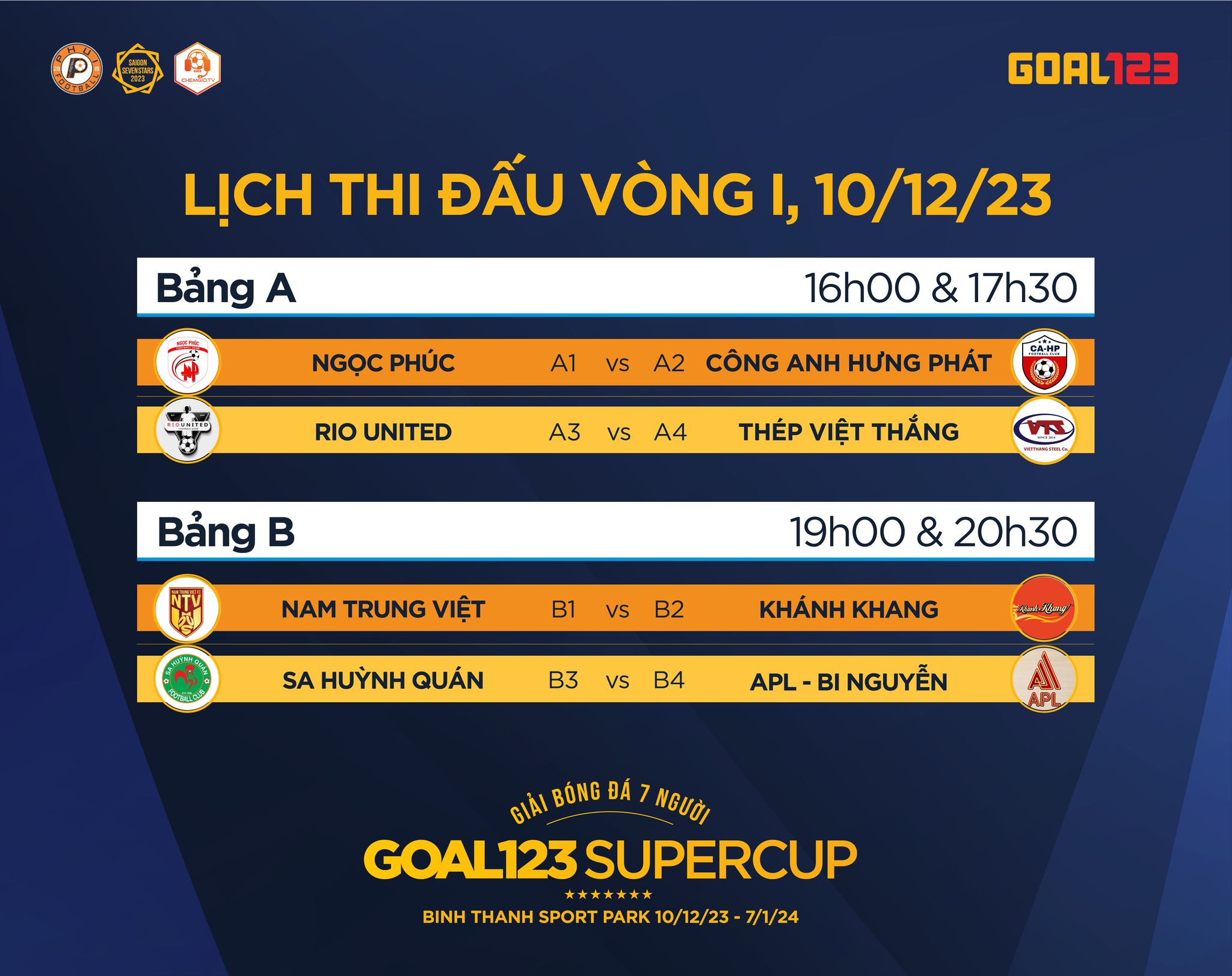 🗓 Lịch thi đấu Vòng 1 - Giải bóng đá 7 người Goal123 Super Cup 2023 🏆🏆🏆
