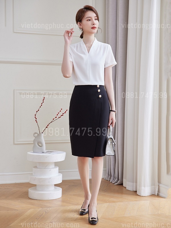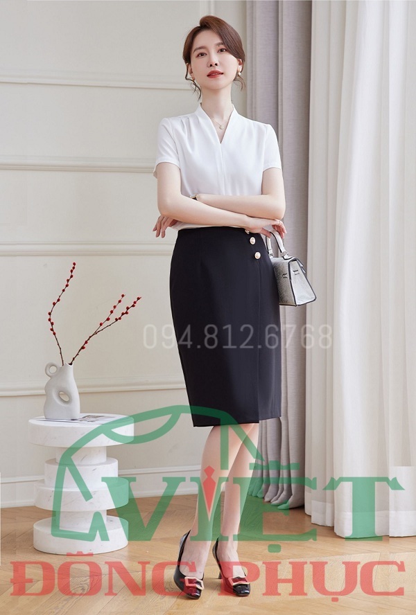 - Mẫu chân váy mà VIỆT ĐỒNG PHỤC giới thiệu dưới đây thiết kế form dáng bút chì cạp cao, đường chiết ly gọn gàng, mang đến cho các nàng vẻ ngoài đầy nữ tính và duyên dáng.