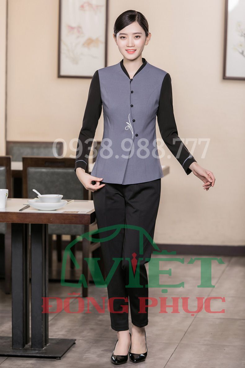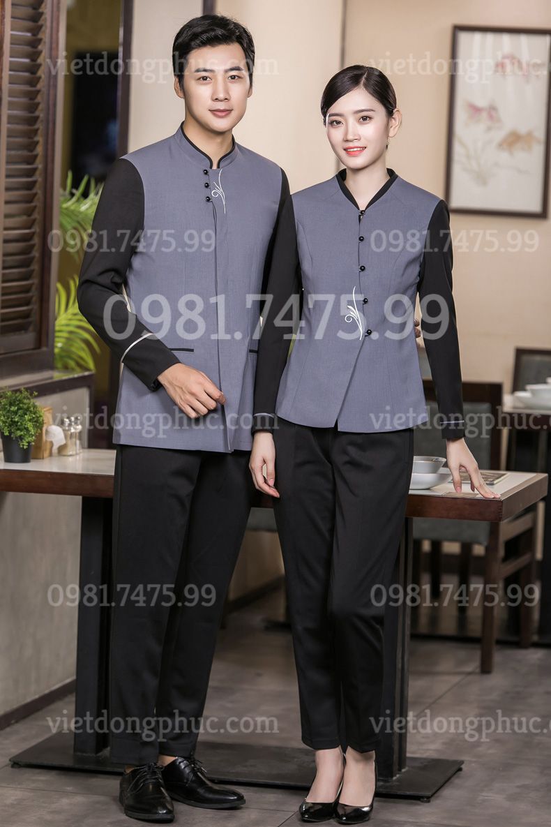 - Mẫu đồng phục phục vụ bàn dành cho cả nam và nữ được mà VIỆT ĐỒNG PHỤC giới thiệu dưới đây được thiết kế hoàn toàn không kén dáng, thêu họa tiết thủ công tỉ mỉ, tạo điểm nhấn cho chiếc áo thêm phần sang trọng và ấn tượng.