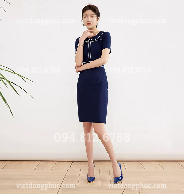 - Mẫu váy liền công sở được may thân dáng ôm vừa phải giúp tôn lên chiều cao cũng như vẻ đẹp gợi cảm của người mặc.