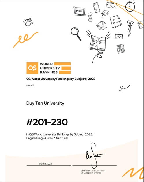 Lĩnh vực Kiến trúc - Xây dựng của DTU trên Bảng Xếp hạng QS World Rankings by Subjects 2023
