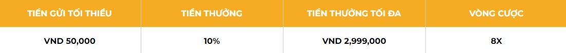 a. Sau khi hoàn tất yêu cầu nạp lại tối thiểu, thành viên sẽ được nhận Khuyến Mãi hợp lệ mỗi ngày.