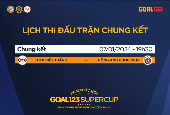 Goal123 Supercup - Nơi mà mỗi trận đấu đều là cuộc chạm trán đầy kịch tính và quyết liệt! Các cầu thủ không chỉ thi đấu với tinh thần quyết tâm cao nhất, mà còn tạo ra những siêu phẩm bàn thắng đẹp mắt, chinh phục trái tim của khán giả!Chúng ta hãy cùng chờ đón sự hồi hộp và hấp dẫn tại trận chung kết Goal123 Super Cup mùa 2 giữa CÔNG ANH HƯNG PHÁT và THÉP VIỆT THẮNG!