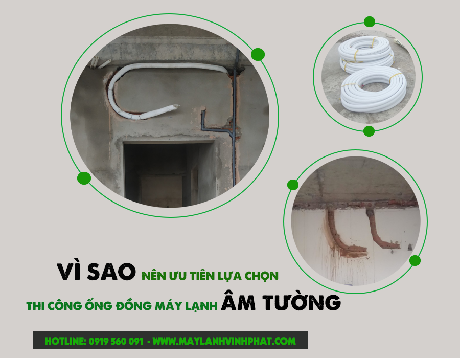 • Chọn Thi công ống đồng máy lạnh âm tường khi tiến độ công trình hoàn thành sẽ rất thẩm mỹ, bới các vật tư đều đi âm vào trong tường, không gây vướng víu cho không gian, đẹp và lạ trong mắt người dùng.