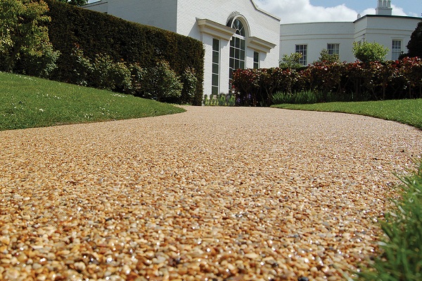 Sau đó, trộn đều chất kết dính với cốt liệu đã chọn để thi công sàn sỏi Polymer.