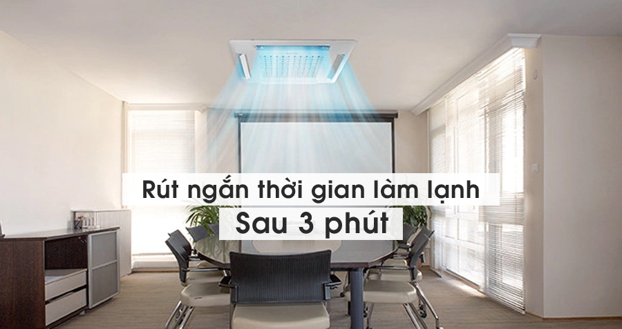 Máy lạnh âm trần SAMSUNG thiết kế với phong cách máy nén thông minh và hàng loạt các tính năng cải tiến. Dàn lạnh được trang bị cánh đảo gió có thể tháo rời để bảo trì dễ dàng hơn. Điều này có nghĩa là người dùng k cần phải tháo rời toàn bộ mặt nạ để vệ sinh cánh đảo gió chỉ với vài thao tác đơn giản, giúp máy lạnh được bền lâu và giảm chi phí bảo trì. Ở chế độ thấp, máy thiết lập trạng thái gần như yên tĩnh với âm thanh chỉ vào khoảng 24db(A), là giải pháp lý tưởng cho những không gian cần thư giãn và sự yên tĩnh. Đảo gió tự động 4 hướng với luồng gió thổi xa lên đến 100mm mang lại không khí mát lạnh trong khoảng cách 8m giúp làm lạnh căn phòng của bạn nhanh chóng mọi ngóc ngách