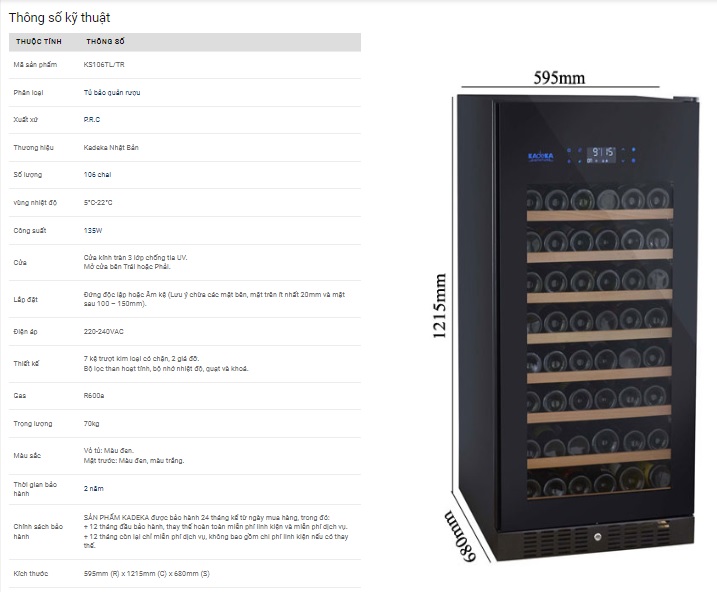 Toàn Quốc Tủ rượu Kadeka thương hiệu Nhật Bản, top 5 mẫu trữ lượng lớn