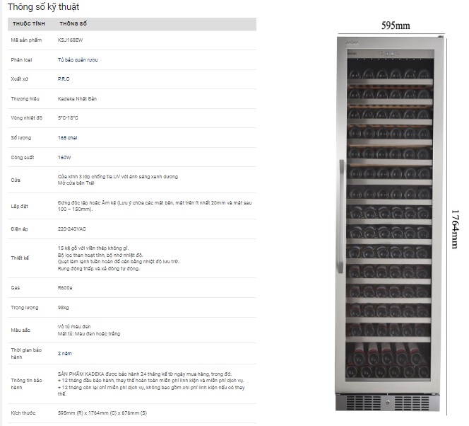 4. Tủ ướp bảo quản rượu vang Kadeka KSJ168EW