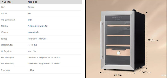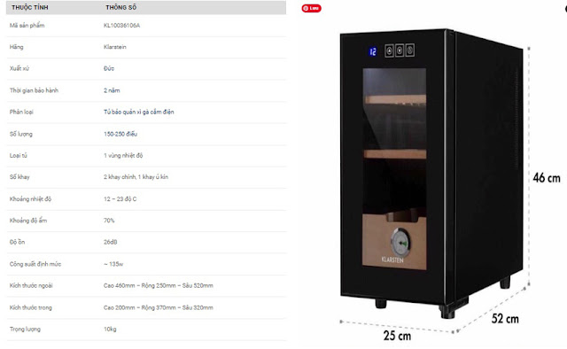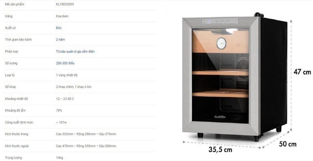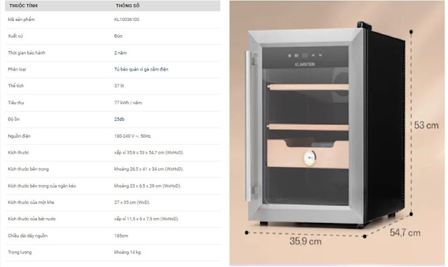 - Tủ bảo quản xì gà Klarstein KL10036106A dung tích 23 lít