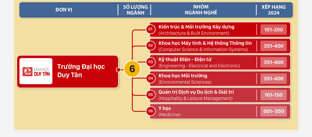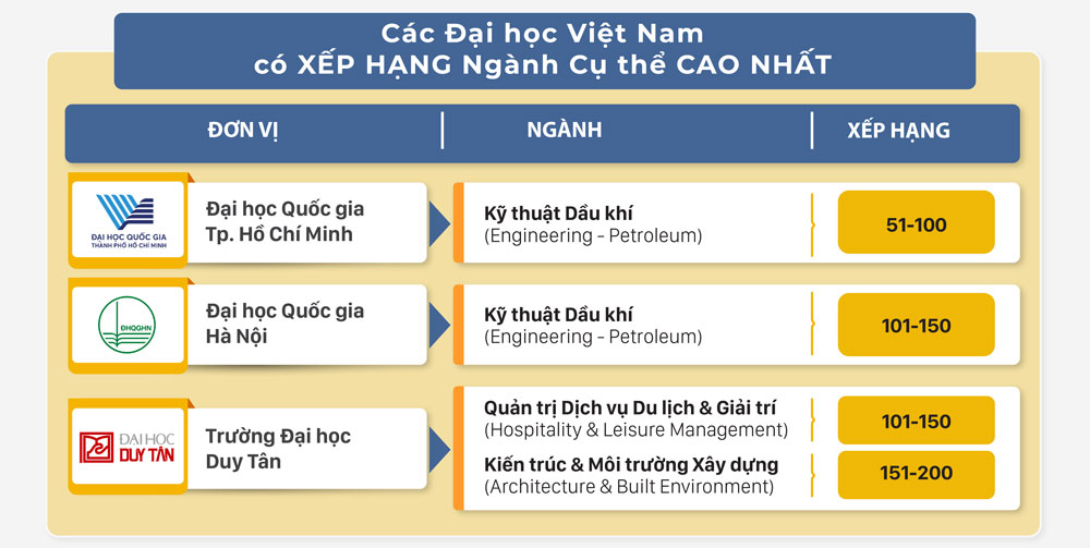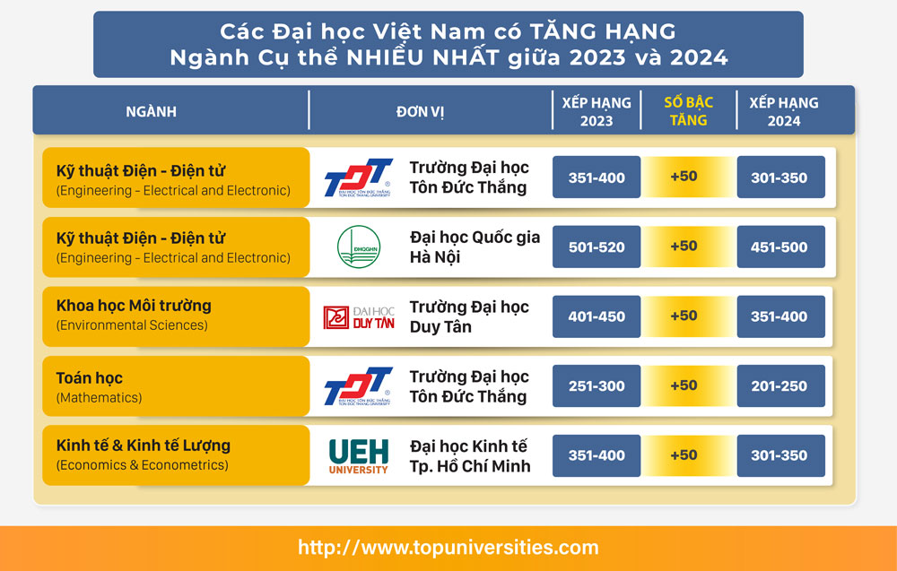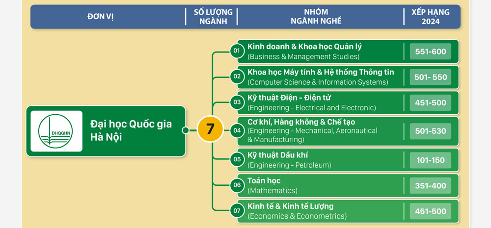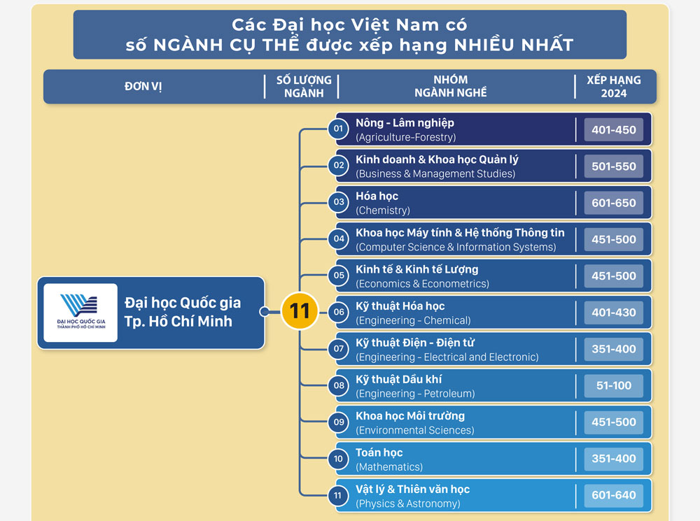Xếp hạng QS các ngành nghề của các đại học Việt Nam 2024